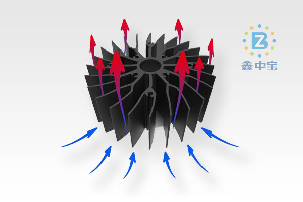 LED燈具散熱器是LED散熱片的基體與若干翹片組成的散熱結構。LED散熱器的散熱效果主要取決于散熱片與發(fā)熱物體接觸部分的吸熱襯板和散熱片的設計,功能優(yōu)良的LED散熱器,具有吸熱快、熱阻小及去熱快特點。